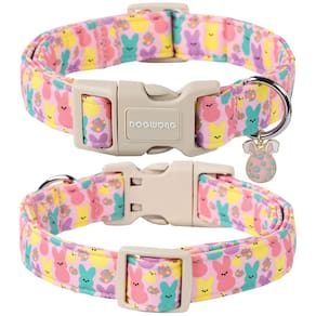 - [Conforto premium] Trate seu cão com o conforto com nossa coleira de Páscoa leve, durável e respirável. Aproveite a limpeza fácil com seu tecido de alta qualidade e recomendação de lavagem à mão para evitar qualquer dano à fivela da máquina de lavar.