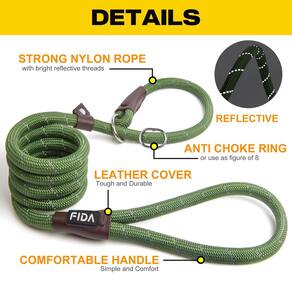 Feito do material de nylon grosso mais forte, encadernado com capa de couro, e o anel de metal resistente oferece máxima durabilidade e ótimo controle do seu cão.