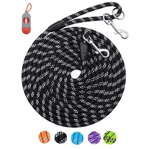 - Cabo de amarração para cães: ambas as extremidades da nossa coleira de corda para cães têm um gancho giratório de aço inoxidável resistente que pode girar 360 graus. Você pode amarrar uma extremidade desta longa linha de grafite ao seu corpo ou árvores, etc., para que você possa liberar suas mãos ao caminhar, caminhar ou brincar ao ar livre.
