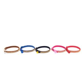 Oleira em couro com aplicação de strass e guizo; Presilha de plástico com passadores de ajuste; Guizo coloridos; Produto especifico para gatos; Tamanho único; Display com 05 coleiras nas cores azul, rosa, vermelho, marrom e preto. Especificações: Circunferência do pescoço: 19 cm a 33 cm. O seu gato vai ficar todo estiloso e alegre com a coleira de couro com Strass com guizo. Marca: Nica pet