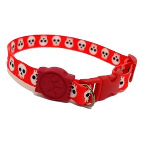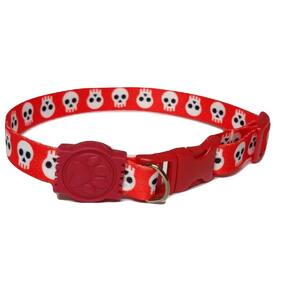 Coleiras confeccionadas em fita 15 mm de seda estampa de caveira na cor vermelha; Presilha de plástico altamente resistentes com passadores de ajuste e borracha em formato de pata; Cor: vermelha Tamanho único. Circunferência: 22 a 35 cm. O seu pet vai ficar todo estiloso e alegre com a coleira de seda. Marca: Não Informado