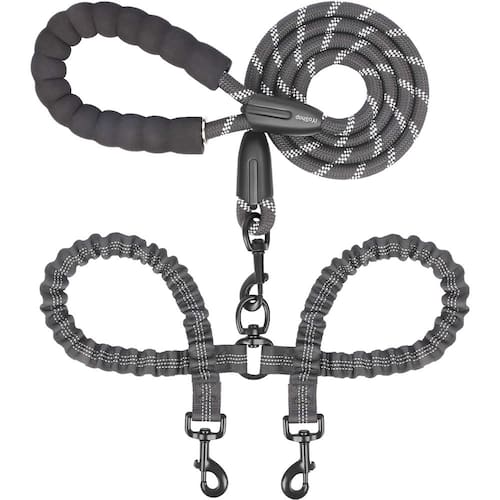 iYoShop Coleira dupla para cães, coleira dupla para cães, coleira giratória 360 que não embaraça, elástico com absorção de choque para dois cães