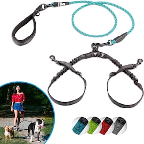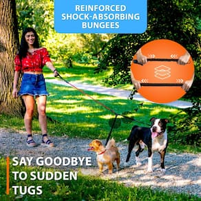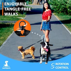 Versátil e livre de emaranhados. Perfeita para passear com dois cães pequenos, nossa coleira dupla para cães possui um design sem emaranhamento de 360°, garantindo caminhadas suaves e sem desconforto. Mude facilmente para uma única correia quando necessário, oferecendo flexibilidade para qualquer situação. O suporte elástico para absorção de choque a torna ideal para cães pequenos que puxam, reduzindo a tensão no pulso e mantendo as caminhadas confortáveis.