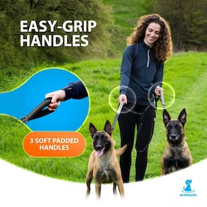 - Alças fáceis de segurar para maior controle – ser capaz de apoiar totalmente seus cães pode ser crucial, especialmente ao atravessar uma rua movimentada. Esta coleira dupla para cães tem 3 alças acolchoadas de espuma que permitirão uma fixação firme e suave ao usar a coleira dupla para cães grandes.