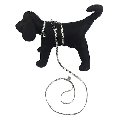 Coleira e guia de passeio para pets pequenos oncinha branco