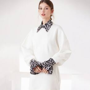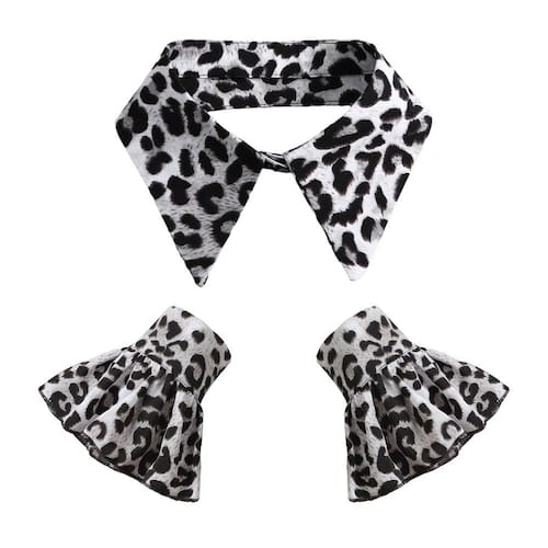 Gola falsa com estampa de leopardo com mangas combinando, golas removíveis, camisa meio falsa, conjunto de gola pontiaguda, acessório de gola sintética para mulheres e meninas, roupas de cosplay de festas Material: algodão Tamanho: 18 × 24 × 2 cm Peso: 100 g