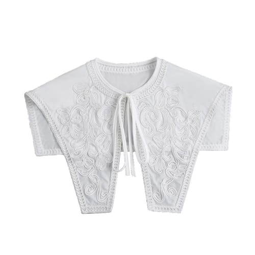 Gola falsa, gola removível, camisa meio falsa, gola de blusa, xale triangular de ombro em nuvem bordado em branco vintage, gola retrô vitoriana com acabamento em renda para mulheres e meninas Material: 70% algodão 30% poliéster Tamanho: 40 × 17 × 36 cm Peso: 100 g