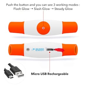 - 3 modos: basta pressionar o botão do interruptor para os seguintes modos em sequência: Flashing Slow, Fast Flashing e Glow. Ele será desligado com mais uma pressão e o ciclo recomeçará.