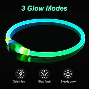 Esta coleira brilhante para cães tem 3 modos de emissão de luz - emissão de luz rápida, emissão de luz lenta e emissão de luz estável, que podem ser alterados clicando no botão de interruptor.