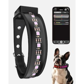 HAIUUOM Coleira de LED recarregável, com controle remoto de aplicativo, coleira para cães, ajustável, 72 cores, iluminada, para noite, alcance visível de 700 m, coleira de segurança para animais de estimação pequenos, médios e grandes - ?Todas as opções de cores?A gola brilhante da marca HAIUUOM oferece todas as cores de iluminação. Use o aplicativo exclusivo para definir livremente brilho, cor, modos de ciclo, etc., e criar facilmente efeitos de iluminação exclusivos. Com contas de lâmpada LED5050, é 5 vezes mais brilhante do que as coleiras regulares, dando visibilidade noturna de 792 metros para a segurança do seu cão, luz perfeita para passear com cães à noite. - Bateria de alta capacidade de 600 mA?Bateria de alta capacidade equipada com coleira de cachorro de 600 mAh, ela só precisa de 2 horas de carregamento para oferecer 4 a 15 horas de uso ultralongo. Seja uma curta caminhada noturna ou uma aventura de longo prazo ao ar livre com seu cão, a coleira de segurança brilhante recarregável continuará iluminando seu caminho. - ?Luz para passear com cães?Um telefone pode controlar de 1 a 15 coleiras simultaneamente dentro de um alcance de 33,5 m. Você pode fazer todas as coleiras refletivas para cães mostrarem a mesma cor ou criar grupos para diferentes combinações de iluminação, colocando em um show de luzes deslumbrante e personalizado. É uma escolha perfeita para escolas de treinamento de animais de estimação, festas ou famílias com vários animais de estimação. - ?Mais de 20 modos de iluminação?O equipamento refletivo para cães oferece mais de 20 modos de cor única, multicolorida e colorida. A operação simples do aplicativo dá ao seu animal de estimação uma aparência leve única. Coleira impermeável IP65 para cães, é segura para usar em chuva leve. - ?Material TPU e anel D?Luz noturna para cães feita de TPU e nylon de alta qualidade, é super confortável para o seu animal de estimação. Cada coleira LED para cães é ajustável com a fivela. Há também um anel em D resistente para fixação fácil e segura da coleira. - ?Serve para todas as raças de cães?Temos 4 tamanhos para cães pequenos, médios e grandes. Golden Retrievers, Labradores, Poodles, Beagles, Huskies, etc. Todos encontram o ajuste certo. A coleira para animais de estimação dá a cada animal de estimação um uso confortável, seguro e confortável, mantendo seus cuidados próximos.