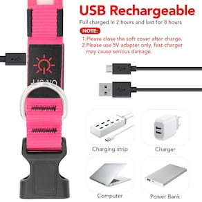- ?Leve e recarregável por USB? – Nossa luz de coleira para cães com um acolchoado macio faz com que seu cão se sinta confortável. Pare de perder tempo com trocas frequentes de bateria ou carregamento. Pode ser carregado a partir de qualquer dispositivo (exceto o carregador rápido) através de qualquer cabo micro USB. Pode ser carregado em computadores, carregadores de carro, carregadores de energia, etc. Observação: use apenas o adaptador USB de 5 V.