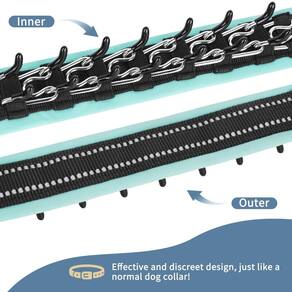 — Coleiras ocultas para puxar: a coleira Mayerzon para cães sem puxar integra os elos à coleira, permitindo ajustes fáceis de tamanho sem remover manualmente os elos. Sua aparência discreta ajuda a evitar atenção indesejada de outros donos de cães
