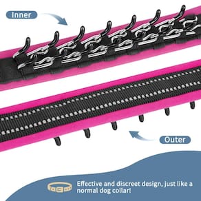 — Coleiras ocultas para puxar: a coleira Mayerzon para cães sem puxar integra os elos à coleira, permitindo ajustes fáceis de tamanho sem remover manualmente os elos. Sua aparência discreta ajuda a evitar atenção indesejada de outros donos de cães