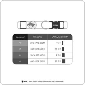 Tira em Poliéster super macio e resistente é a mesma utilizada em cintos de segurança;Tecnologia inTransfer® garante a estampa com cores mais vivas;100% ajustável ao corpo do animal (verifique a tabela e tamanhos);Fecho resistente com engate rápido e 4 pontos de segurança.TAMANHO M - Pescoço - 33cm até 50cm Largura da fita - 2cm Ean: 0796167952688