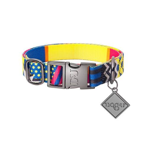 A Coleira Pop para Cachorro e 100% regulável, com design exclusivo, feita com poliéster ultra entrelaçado e acabamentos em liga de zinco com fecho super resistente. Acompanha plaquinha de identificação para você gravar as informações de contato ou estado de saúde do seu cachorro no verso.