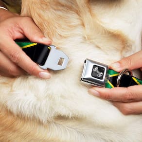 Feita de poliéster de alta densidade e componentes de aço duráveis, esta coleira foi feita para durar e apresenta belas obras de arte vibrantes.