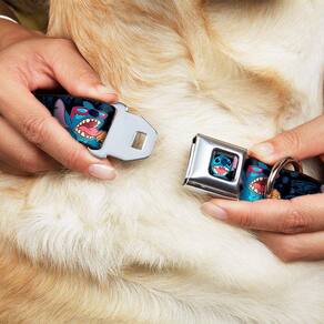 Coleira para cães com fivela de cinto de segurança — Poses de lanche Stitch em preto/azul — 2,5 cm de largura — serve para pescoço de 11-17" — Média