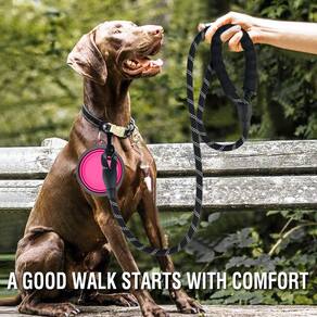 - Suporte de pulso confortável - Possui uma alça ergonômica, possui alças acolchoadas macias para conforto extra. Oferece uma aderência firme sem esfregar contra sua mão, causando queimaduras na corda. Esta coleira para cães não demorará muito para você nos agradecer pelo conforto desta alça se você tiver um cão grande e se precisar segurá-la com frequência enquanto caminha.