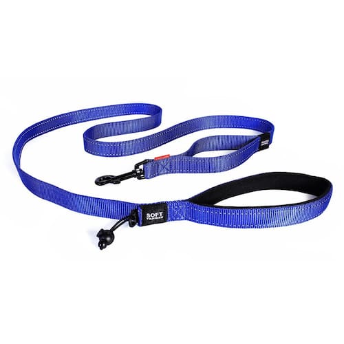 Coleira para cães EzyDog Soft Trainer com alça de controle de tráfego — costura refletiva para segurança noturna e maior resistência e conforto para treinar cães grandes a médios (72”, azul)