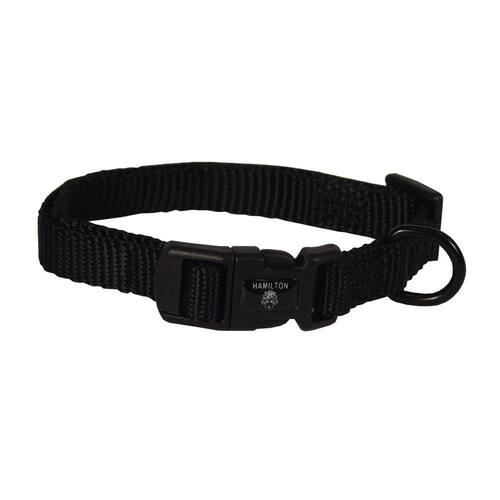 Coleira de nylon ajustável para cães Hamilton, preta, 3/8" x 7-12"