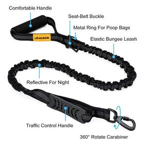 Esta coleira para cães com cinto de segurança para carro mantém seu cão seguro enquanto dirige, anel em D para prender sacos de cocô ou tigela, a alça de trânsito pode ser usada como uma coleira curta, amortecedor elástico perfeito para treinar caminhada e corrida.