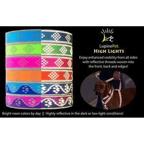 A coleira refletiva Lupin para cães de 2,5 cm de largura se ajusta de 16" a 28"