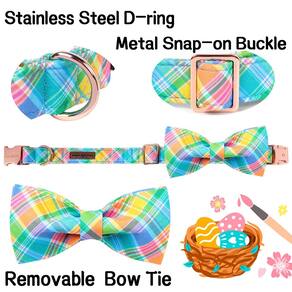 - ? Laço removível/gravata floral ?: O laço ou laço de flor da coleira de cão de Páscoa é removível. A gravata tem dois elásticos, passe a gravata pela coleira de cachorro ou amarre-a em qualquer outra coleira. Você pode DIY sua coleira de cachorro.