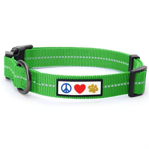 As coleiras refletivas para cães Pawtitas sempre andam com estilo em qualquer lugar que suas aventuras o levem com a coleira refletiva para cães Pawtitas. Graças ao seu design amplo, é muito fácil de usar para qualquer caminhada, trote ou passeio pelo quarteirão ou muito longe. É perfeito para o dia ou a noite, pois sua costura refletiva costurada foi projetada para refletir a luz do ambiente, a luz ambiente, mesmo em condições de pouca luz, oferecendo visibilidade máxima quando você mais precisa. Além disso, como é feito com uma tira sólida de nylon Ripstop reforçado, uma técnica especial de tecelagem que o torna resistente a rasgos e rasgos, é extremamente durável para uso diário. Segurança e estilo para uma parte importante da sua família. A coleira reflexiva ajustável Pawtitas está disponível como coleira extra pequena, coleira pequena, coleira média ou coleira grande, adequada para cães pequenos a cães grandes. A linha refletiva tecida Pawtitas manterá a parte peluda de sua família segura e confortável do amanhecer ao anoitecer. Materiais duráveis com faixa reflexiva costurada no náilon, os produtos Pawtitas durarão muitos anos. O conforto é essencial para seu melhor amigo; o anel D de Pawtitas é colocado próximo à fivela para evitar pressão no pescoço. Sabemos que todos somos únicos, assim como seu cão, por esse motivo, nossa coleira refletiva está disponível com uma ótima seleção de cores, oferecendo visibilidade máxima quando seu filhote mais precisa. Arnês e coleira para cães correspondentes vendidos separadamente
