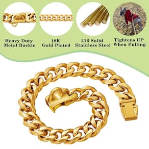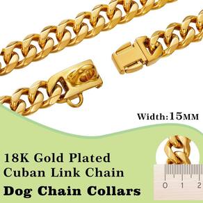 Sobre as coleiras RAIWAV de aço inoxidável douradas para cães com trava de fivela de segurança Por que escolher coleira de aço inoxidável para cães? Não oxida e é capaz de suportar muito desgaste, requer manutenção mínima. E é incrivelmente hipoalergênico. Tais vantagens o tornam um acessório mais popular. Por que escolher a coleira de cachorro de aço inoxidável RAIWAV? As coleiras de corrente de ouro para cães RAIWAV são feitas de aço inoxidável 316L, banhadas a ouro 18K com alta resistência e dureza, pesadas, duráveis, sem ferrugem, não mancham por anos de uso. Por que precisa desta coleira de aço inoxidável? Se você tiver um cão mastigável, esta coleira é perfeita para o seu animal de estimação. O artesanato altamente polido torna a superfície brilhante e suave, então acreditamos que seu cão ficará feliz em ter esta coleira. Ótimo para rottweiler, American Bully, Pastor Alemão, Husky, Newfoundland, Belga Malinois, Pitsky Saint Bernard, English Bull e assim por diante. - [Material de alta qualidade]: nossas coleiras de corrente de ouro para cães são feitas de aço inoxidável 316L, banhado a ouro 18K com alta resistência e dureza, pesadas, duráveis, sem ferrugem, sem manchas por anos de uso. A coleira dourada forte é adequada para todos os cães pequenos, médios e grandes. - [Tamanhos da coleira]: a largura da corrente de elos cubanos é de 15 mm; o comprimento total é de 25 a 66 cm. Meça o pescoço do seu cão e adicione 2,5 a 5 cm para o comprimento inicial da coleira para ajuste. - [Coleiras de treinamento]: nossa coleira de cachorro é apertada sob tensão, mas apenas aperta o suficiente para fornecer uma dica de treinamento de correção suave ao seu cão sem mais puxões. Ótimo para rottweiler, American Bully, Pastor Alemão, Husky, Newfoundland, Belga Malinois, Pitsky Saint Bernard, English Bull e assim por diante. - [Fivelas resistentes]: nossas fivelas de coleira de cachorro são muito resistentes e sólidas e são fáceis de colocar e tirar. Os fechos são seguros onde você não precisa se preocupar com ele cair ou quebrar. - [Os animais de estimação vão adorar]: as coleiras de colar para cães RAIWAV deixam seus cães adoráveis, bonitos e bonitos. Altamente polido, artesanato requintado garante aparência cara.