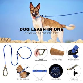 LYNXKING Coleira deslizante para cães – Coleira de treinamento refletiva e ajustável. Esta coleira para cães combina conveniência e firmeza, cancelando a necessidade de uma coleira ou arnês separados. Feita de corda de nylon de alta resistência (1,27 cm de espessura) com um anel de metal e nós de couro, é forte e leve para conforto durante todo o dia. A costura reflexiva garante visibilidade durante caminhadas noturnas ou jogging, mantendo seu cão visível. Perfeito para treinamento, o laço deslizante aperta quando puxa e solta quando corrigido, ajudando a ensinar maneiras adequadas da coleira. O laço ajustável facilita colocar/tirar, enquanto o comprimento de 1,8 m é ideal para caminhadas, caminhadas ou corrida. Características principais: 1. Sem necessidade de coleira – guia deslizante tudo-em-um 2. Refletor para visibilidade noturna 3. Corda de nylon resistente e leve 4. Fácil de treinar – ajuda a corrigir o puxão de 1,7 m de comprimento – perfeita para caminhadas ao ar livre e aventuras ao ar livre. Atualize as caminhadas do seu cão com esta correia deslizante resistente e sem puxão, ideal para treinamento e uso diário.