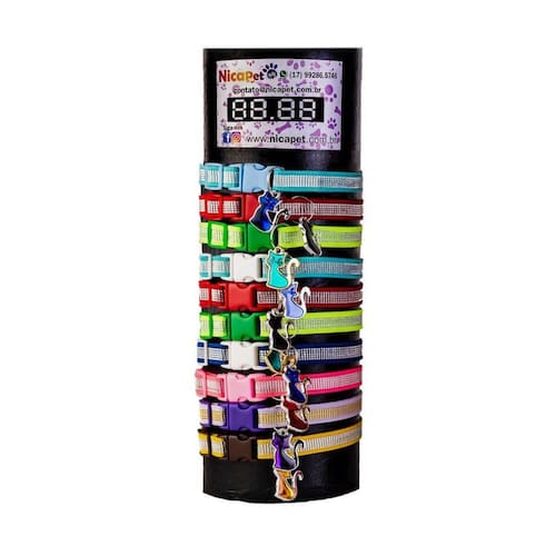 - display com 10 coleiras cores diversas;