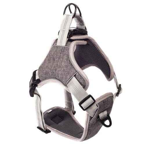 Coleira peitoral antipuxão para cachorro madog comfort cinza Tamanho: xg Perfeito para te ajudar a ensinar o seu cachorro de médio e grande porte a não puxar durante o passeio. Garanta o máximo de conforto e controle durante o passeio com o seu cão. - design ergonômico. - lado interno em mesh respirável e acolchoado. - perfeito para cães de médio e grande porte que puxam muito. Esse peitoral para cachorro conta com dois pontos diferentes para engate da guia: - engate tradicional nas costas desenhado com aba para proteção do pelo na hora de engatar a fivela de encaixe e argola dupla para segurança. - engate frontal no peito para auxiliar na reeducação de cachorros que puxam ao puxar, o corpo do pet vira para o lado, ajudando a mudar o foco . os dois engates eliminam qualquer pressão sobre o pescoço do cachorro. Conta com marcações refletivas, aumentando a segurança do seu pet em passeios noturnos. Pode ser usada com qualquer modelo de guia de passeio para cachorro. - tamanhos: m / g / xg escolha o tamanho adequado na guia de tamanhos, disponível nas imagens do produto . Fácil de ajustar: todas as tiras contam com regulagem de tamanho. - cor: cinza a cor real pode ser ligeiramente diferente da imagem devido à diferença entre as telas do monitor. Dicas madog para bom uso da coleira: - evite contato/atrito com superfícies ásperas ou cortantes. - não deixe que seu pet fique mordendo o peitoral : - lave à mão, com água e sabão neutro, e seque à sombra. Procure mantê-lo limpo, evitando sujeiras que possam prejudicar o pelo e a pele do cachorro. - para a segurança do seu cão, sempre verifique se as travas foram engatadas corretamente. Antes de finalizar a compra, confira o tamanho seguindo nossa tabela de tamanhos disponível nas imagens do produto : Marca: Madog
