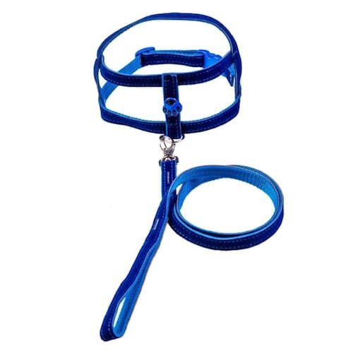 Peitoral tradicional com apliques diversos para cães - peitoral confeccionado em camurça 15mm; - com apliques diversos; - guia de camurça 90cm; - mosquetão médio com trava de segurança; - indicado para cachorros de pequeno e médio porte. - na cor: azul; - tamanho: nº 04 Medidas número 04: Nº. 04 - 46cm de circunferência do pescoço; 48 a 58cm de circunferência tórax; Marca: Nicapet Ean: 7891031085837