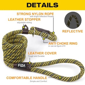 Feito do material de nylon grosso mais forte, encadernado com capa de couro, e o anel de metal resistente oferece máxima durabilidade e ótimo controle do seu cão.