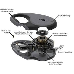 - Coleira de fita de 4,8 m com retração de fácil ajuste; movimento de fita de 360 graus livre de emaranhados