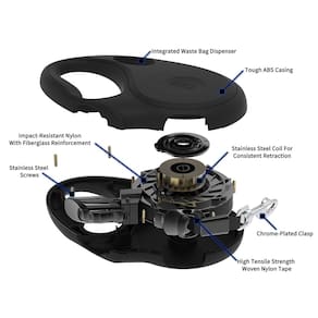 - Coleira de fita de 4,9 m com retração de fácil ajuste; movimento de fita sem emaranhamento de 360 graus
