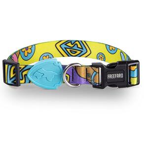 A nova Coleira Scooby-Doo tm para Cães, é uma parceria entre a FreeFaro e a Warner Bros e traz toda a diversão e o carisma da clássica animação para o dia a dia do seu pet. Um lado da coleira destaca as expressões divertidas do Scooby, o famoso furgão Mystery Machine e o logotipo da série, enquanto o outro lado exibe listras verdes e azuis, decoradas com logos randômicos que completam o visual nostálgico e alegre. Além do design encantador, a coleira foi pensada para proporcionar conforto e segurança durante os passeios. Feita em poliéster super macio, o material é resistente e garante durabilidade, enquanto a tecnologia inTransfer assegura que as cores da estampa fiquem mais vivas e duradouras. Com 100% de ajuste, ela se adapta perfeitamente ao pescoço do seu cachorro, oferecendo um encaixe seguro e confortável. O fecho conta com um engate rápido e possui 4 pontos de segurança, proporcionando mais tranquilidade durante os momentos de lazer com seu amigo de quatro patas. Consumer Products, garantindo autenticidade e qualidade.