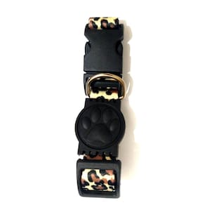 Coleiras confeccionadas em fita 25 mm de seda estampa de onça; Presilha de plástico altamente resistentes com passadores de ajuste e borracha em formato de pata; cor: onça Tamanho único. Especificações Circunferência: 32 a 49 cm. O seu pet vai ficar todo estiloso e alegre com a coleira de seda. Marca: Nica pet Ean: 7439214381040