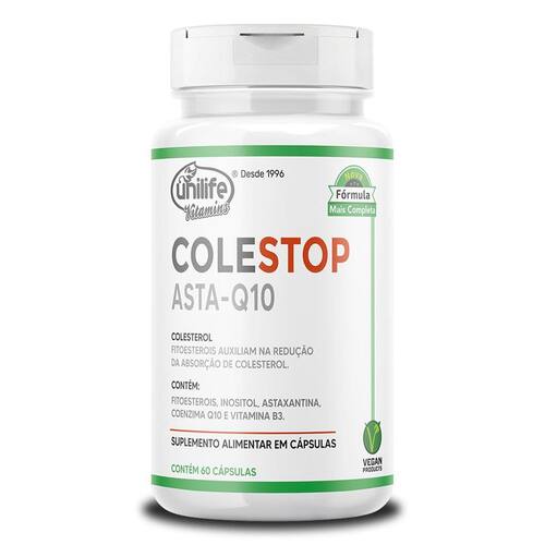 Colestop asta q10 unilife 60 cápsulas Sobre o produto O colestop asta-q10 é um composto gorduroso derivados de plantas fito , normalmente são associados como uma contraparte do , que é originário dos animais, mas seus efeitos são totalmente diferentes para a saúde no geral. No organismo humano, essas substâncias acabam não sendo tão absorvidas pelo intestino, gerando uma competição com outros lipídios, incluindo o ruim, o ldl, e ao substituir essas gorduras na dieta, eles podem favorecer a liberar a circulação sanguínea nas veias, contribuindo contra que elas sejam entupidas por conta do . Benefícios - contribui na redução do ; - protege a saúde cardíaca; - pode contribuir contra o ruim; - favorece na manutenção do índice de massa corporal. Modo de usar Ingerir 4 cápsulas ao dia após a refeição. Ingredientes Fitoesterois de óleos de semente de soja, canola, colza, milho, palma, algodão, girassol ou linhaça, inositol, ésteres de astaxantina de haematococcus pluvialis, niacinamida, coenzima q10, lubrificante estearato de magnésio e antiumectante dióxido de silício. Composição da cápsula: gelatina vegetal e água purificada. Alergênicos não contém glúten. alérgicos: contém derivados de soja. Código anvisa Marca: Não Informado