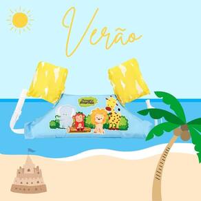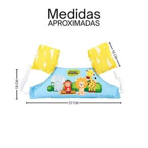 Destaques de Segurança: - Fivelas Ajustáveis: 3 pontos de regulagem para fixação perfeita - Material Premium: - Externo: 100% poliéster resistente - Interno: EPE espuma não absorvente - Flutuação Otimizada: Distribuição equilibrada para nado seguro - Design Encantador: Estampas coloridas e divertidas