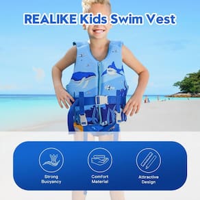 1 - Aplicação: O colete de natação REALIKE Kids está disponível em quatro tamanhos: Tamanho pequeno (para crianças de 2 a 4 anos, 10 a 15 kg). Tamanho médio (para crianças de 4 a 6 anos, 15 a 20 kg). Tamanho grande (para crianças de 6 a 8 anos, 20 a 25 kg). Tamanho GG (para crianças de 8 a 10 anos, 25 a 39 kg), perfeito para meninos e meninas que estão aprendendo a nadar. O colete de natação infantil REALIKE pode ser utilizado em piscinas, praias marítimas, barcos ou à beira do lago. - Conforto e segurança: colete de natação infantil REALIKE com três designs de fivela de segurança e alça de nylon de alta densidade ajustável, pode se ajustar melhor ao corpo das crianças e deixá-las mais confortáveis. A fivela ajustável na parte inferior não se soltará mesmo se flutuar para cima e para baixo na água, aumentando a segurança. - MATERIAL PREMIUM: colete de natação infantil REALIKE feito de tecidos de neoprene de alta qualidade. Ecológico e amigo da pele. Pode trazer aos seus filhos uma experiência confortável quando estão na água. - Ótimo design: estilo sem mangas, envolve o tronco da criança e mantém os braços livres para nadar. O colete de natação REALIKE pode ajudar as crianças a flutuar e manter o equilíbrio na água, mais liberdade e confiança para nadar e brincar. - Fácil de transportar e armazenar: o colete de natação REALIKE vem com uma bolsa de rede de nylon prática para fácil armazenamento e transporte. Nossa bolsa é leve e respirável, permitindo que o colete de natação seque rapidamente e evite odores.