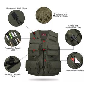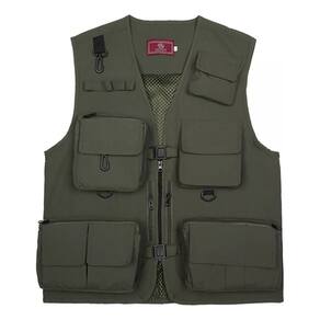 Colete de pesca de verão com vários bolsos verde militar para adulto