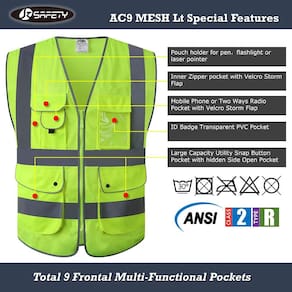 Tipo: Colete de segurança 100% poliéster de alta reflexão com visibilidade de 360°; malha respirável HQ; Leve, durável, lavável na máquina. Características: EPI sem mangas com tiras refletivas de 5 cm de largura de alta visibilidade ao longo dos ombros, peito, cintura e área das costas. Ele oferece um reflexo de 360° enquanto você está na luz do dia, condição de pouca luz ou à noite. Design de 9 bolsos frontais funcionais com bolso de identificação transparente de PVC; bolsas para celular ou lanterna pequena; 2 bolsos grandes de plástico com botão de pressão para itens utilitários diários; Aplicações: Industrial: piloto de drone licenciado pela FAA. Certificações: Conformidade total com ANSI/ISEA 107 Classe 2 Tipo R Unissex: Este colete de segurança é ótimo para homens e mulheres. Segurança no trabalho Obrigado por apoiar a JKSafety. - Materiais: colete de segurança respirável de alta reflexão com visibilidade de 360°; malha respirável de alta qualidade; zíper resistente; leve, durável, lavável na máquina. - Alta visibilidade e reflexão de 360°: EPI sem mangas e respirável com tiras refletivas de 5 cm de largura de alta visibilidade ao longo dos ombros, peito, cintura e área das costas. Ele oferece um reflexo de 360° enquanto você está na luz do dia, condição de pouca luz ou à noite. - 9 bolsos multifuncionais projetados para conveniência: design de 9 bolsos frontais funcionais com bolso de identificação transparente de PVC; bolsas para celular ou lanterna pequena; 2 bolsos grandes de plástico utilitário com botão de pressão para itens utilitários diários e bolsa de inserção; é bem classificado e conveniente de acesso. - APLICAÇÕES DA INDÚSTRIA: Piloto de drone licenciado pela FAA - Certificações: conformidade total com ANSI/ISEA 107 Classe 2 Tipo R. Qualquer imperfeição é garantia para reembolso total ou troca. Sem risco! Adicionar ao carrinho agora