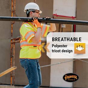 Pioneer Colete de segurança com manga de tricô de alta visibilidade, fita refletiva, 4 bolsos, amarelo/verde, unissex, G, V1023560U-L, grande - Colete de segurança com mangas HI VIS – O colete de segurança Pioneer de tricô de alta visibilidade com mangas é uma escolha respirável e confortável para trabalhadores em EMS, construção e controle de tráfego - Conforto refrescante – Este colete de segurança de manga é feito de malha de poliéster entrelaçado. É altamente respirável, durável e mantém você confortável no trabalho - Total de 4 bolsos – O colete tem 4 bolsos selados, 2 no peito e 2 na cintura, oferecendo vários compartimentos para manter seus pertences e ferramentas seguros - Design funcional – fecho de zíper, cordões de clipe de radiofone e compartimento de acesso ao anel em D para sistemas de contenção de queda - Fique seguro – A fita refletiva StarTech e a cor amarela alta visibilidade atendem aos padrões ANSI/ISEA 107-20 Classe 3 Tipo P e R