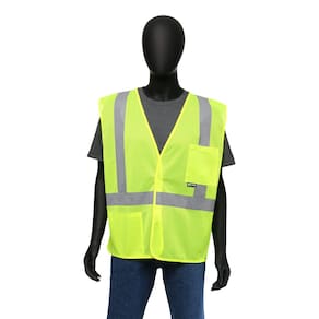Colete de segurança Safety Works ANSI Classe II de alta visibilidade, leve e respirável, 2 bolsos, fecho de fecho aderente, tamanho único, limão (SW46206-O)