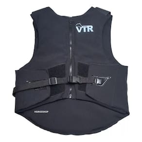 sua parte frontal é feita com exclusivo design seccionado que permite flexibilidade e conforto no ajuste do colete ao tronco do cavaleiro. o fechamento com zíper permite praticidade e rapidez na hora de vestir.