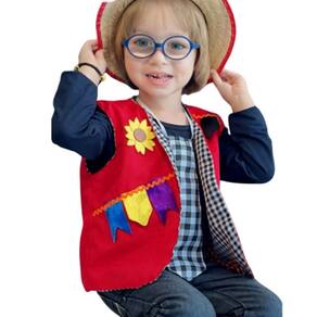 Cada colete é cuidadosamente confeccionado com detalhes temáticos da festa junina, como aplicações de feltro colorido que remetem a bandeirinhas e outros elementos típicos. O design sem mangas garante liberdade de movimento para os pequenos aproveitarem a dança e as brincadeiras do arraiá com muito conforto e estilo.