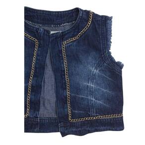 Lindo colete feminino jeans escuro com detalhes em corrente dourada, muito macio obs: formato pequeno !!muita qualidade !! Matinee é chic demais !! Perfeito para ocasiões especiais como aniversários,casamentos e festas em geral, ou simplesmente para dar um rolê babando na sua lindezura . Traz muita naturalidade e leveza que certamente vão encantar nossas pequenas. Coleção inspirada em cores e materiais do Brasil e Europa.Tudo pensado e desenvolvido com muito carinho.