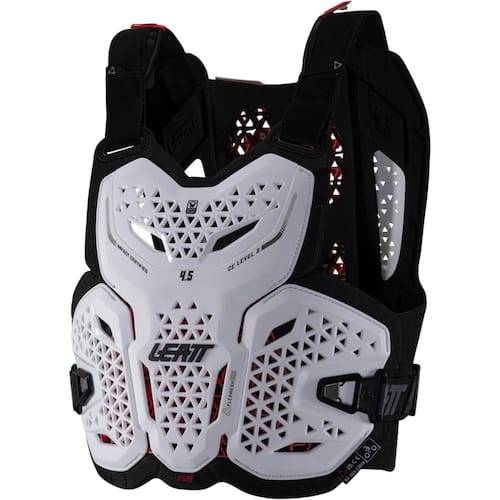 As placas em material rígido o suficiente para suportar os mais variados impactos, tornam o Colete para motocross Leatt 4.5 Evo mais eficiente contra as batidas frontais, garantindo certificação CE, Peito EN1621-3 Nível 2 e Costas EN1621-2 Nível 2.