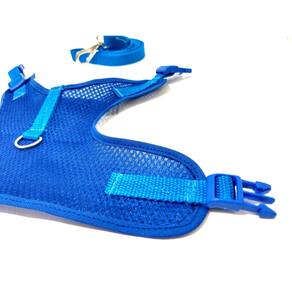Tecido aerado spacer na cor azul; Acabamento em viés azul; Regulagem em fita de nylon e presilhas plastica; Guia de 90 cm de comprimento; Super confortável; Segura e resistente; Cor: azul; Tamanho: M Medidas aproximadas: 34 cm de comprimento, 44 cm de circunferência torax, 27 cm de circunferência pescoço. Estilo, conforto e elegância. Marca: Nica pet Ean: 7436401761920